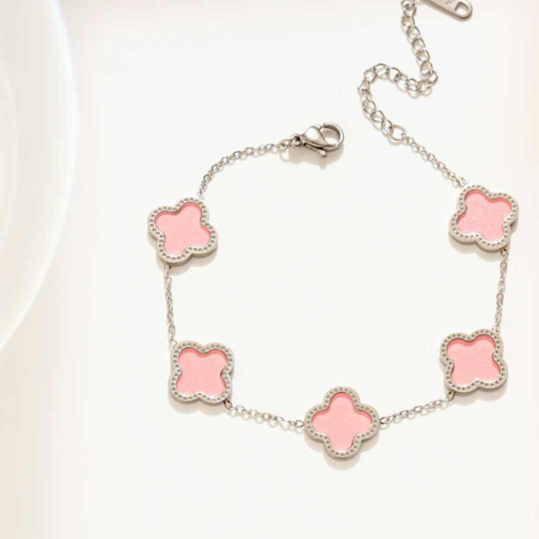 Armbånd kløver, sølvfarget, titanium stål, nikkelfritt, 18K gullbelagt med hvitt gull fra LØW