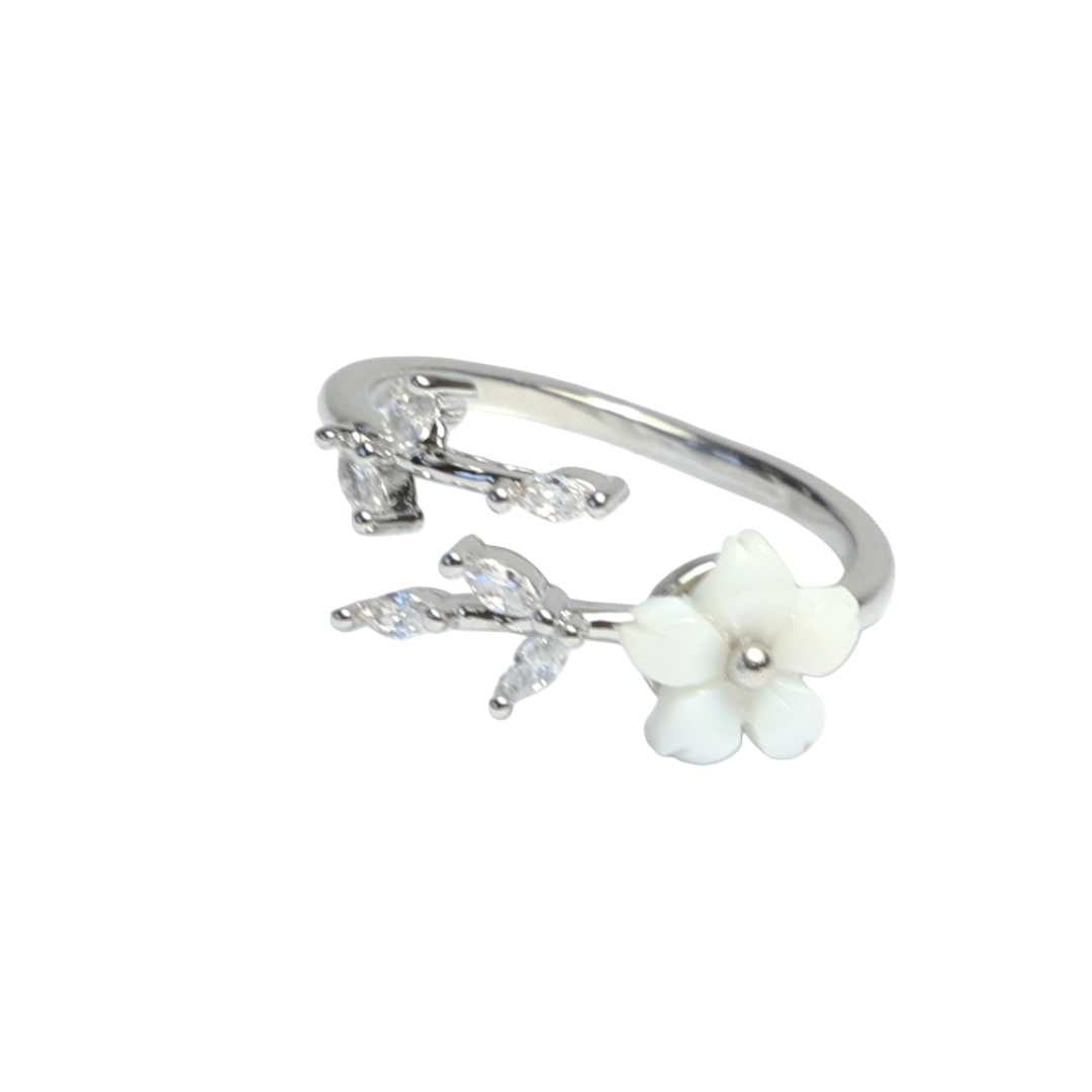 FlowerPower â Justerbar Sølvring i 925 Sterling Sølv med Zirkon og Hvit Blomst
